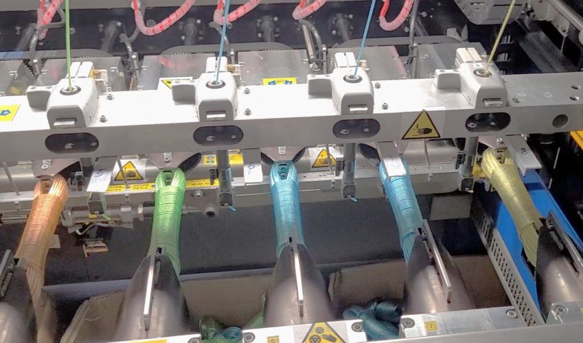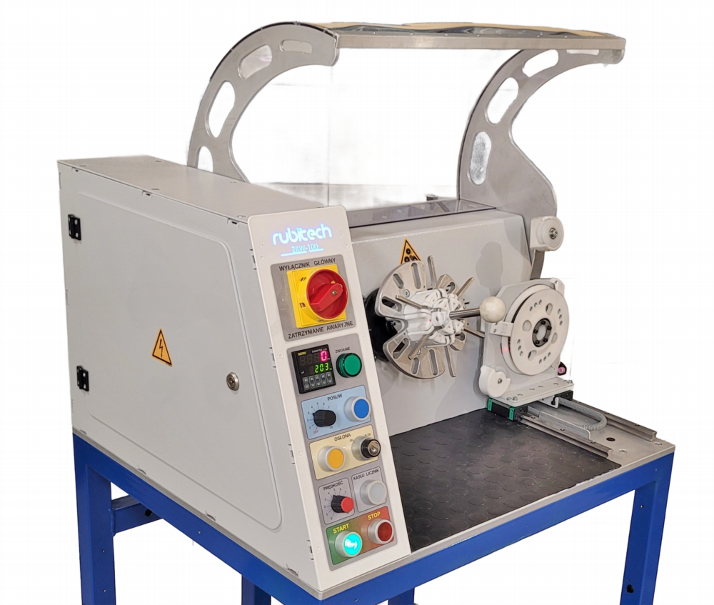 Urządzenie do pokrywania zakończeń drutu polietylenem.